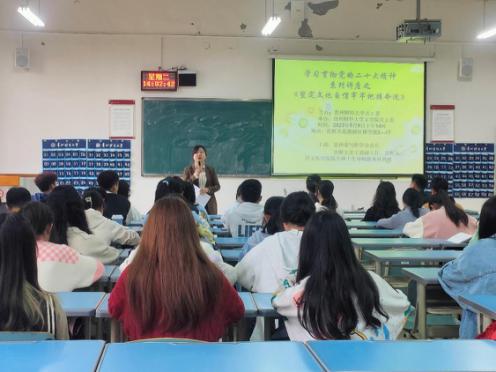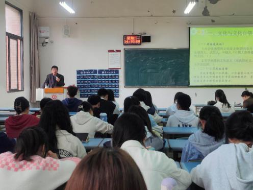 游来林老师围绕“什么是文化”“为什么要文化自信”两个问题,运用生动的案例讲进行了深入浅出的讲解阐释。他强调文化自信是一个民族、一个国家以及一个政党对自身文化价值的充分肯定和积极践行,并对其文化生命力的持久性拥有坚定的信心。最后,游来林老师对同学们提出了殷切期望,要求同学们坚定文化自信,学好专业知识,全面系统地准确认识传统文化的重要性,为全面建设社会主义现代化国家、全面推进中华民族伟大复兴贡献青春力量。