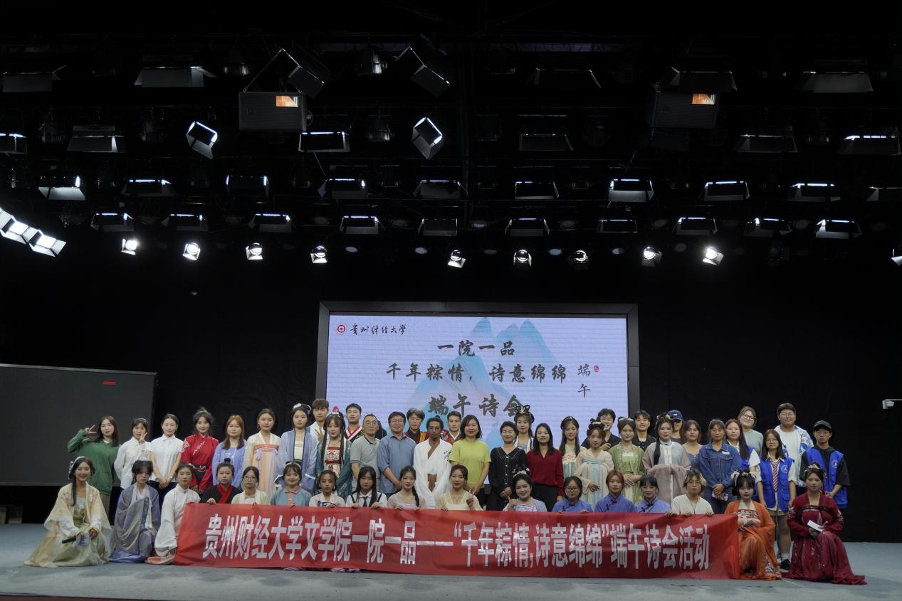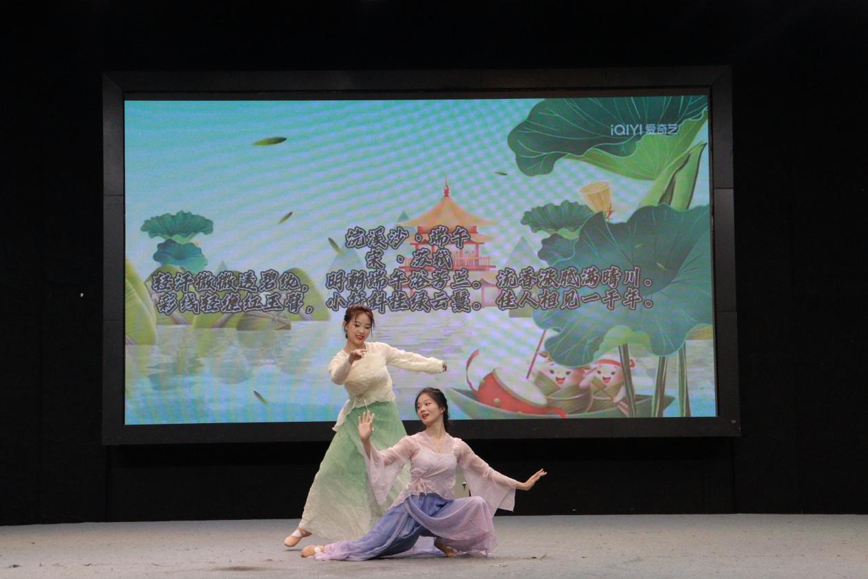 比赛中,同学们朗诵经典爱国主义诗篇《离骚》,感受诗人屈原与国家同休戚、共存亡的爱国情;通过现场书法创作与情景交融的方式演绎《假如没有屈原》,展现屈原诗句的魅力;用情景演绎苗族的《粽情佳节》;用舞蹈演绎诗词的方式表达《端午情》。其间,活动还设置了飞花令游戏环节,由评委抽取主题词,现场观众2V2开展诗词大比拼。比赛最后由知行国学社带来汉服秀表演,峨冠博带、宽袍大袖,静止的时候,凝固着威严和庄重,走动的时候,流露出飘逸和洒脱,展现着中华优秀汉服文化。活动最后游来林从诗的韵味、表演形式、情感表达等几方面进行点评并提出建议。