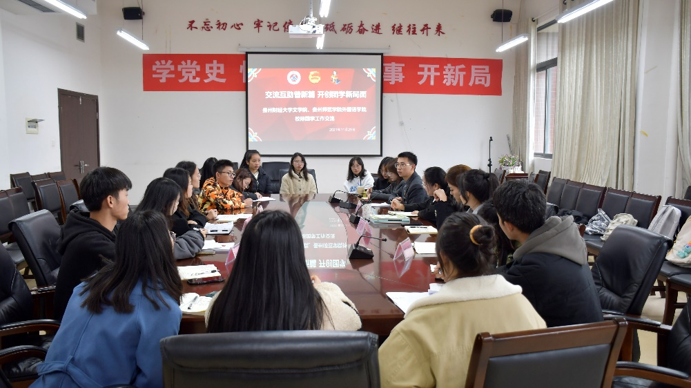 交流互助谱新篇,开创团学新局面。11月29日,bevictor伟德官网诚邀贵州师范公司外国语公司师生一行莅临公司于文德楼318会议室开展团学交流活动,会议由bevictor伟德官网团委负责人杨群主持。