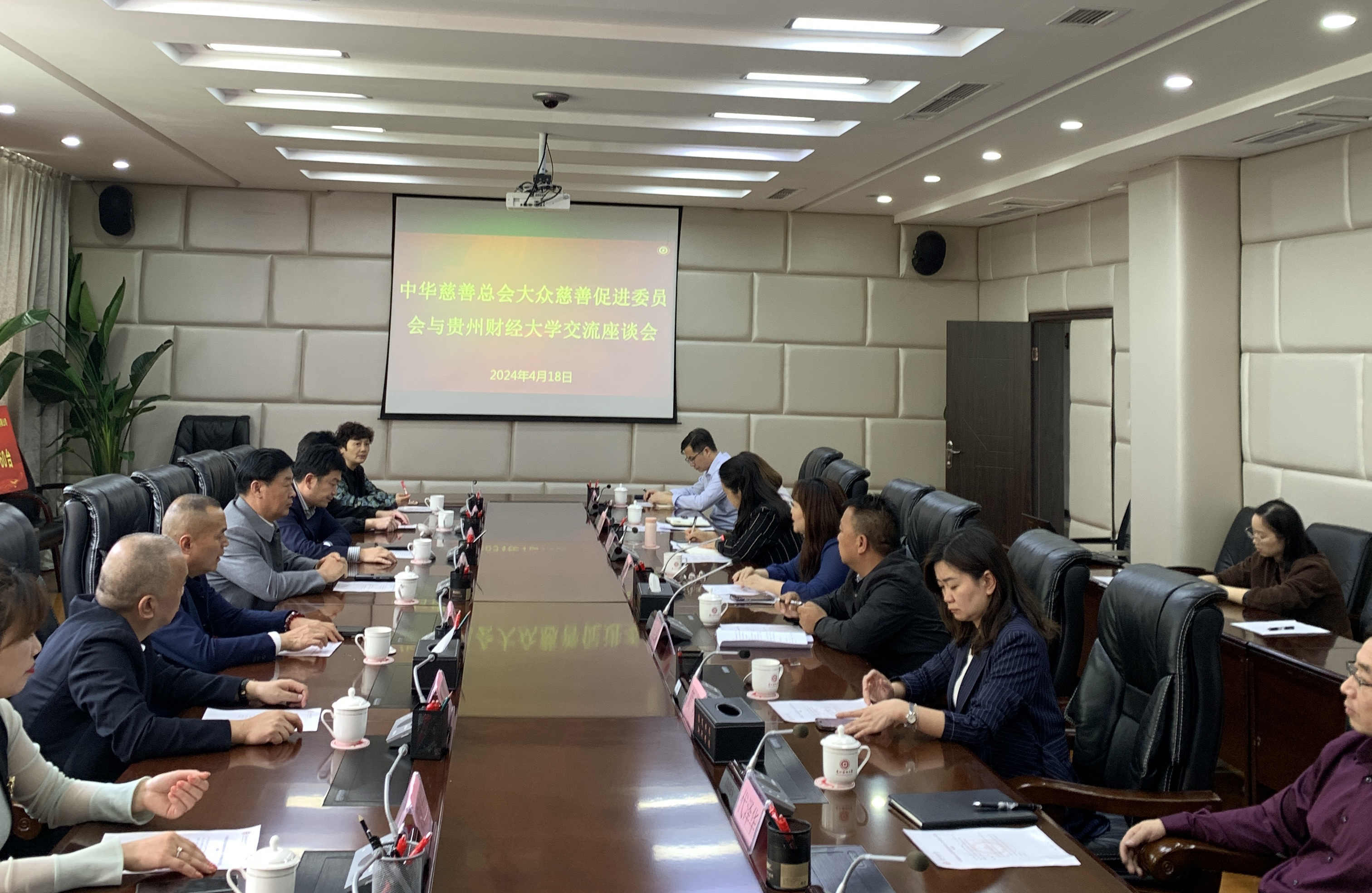 4月18日,中华慈善总会大众慈善促进委员会副会长张志辉,中华慈善总会天使慈善基金副主任黄晓兵,中善(北京)商务服务有限公司执行总裁刘军,贵州多彩宝互联网服务有限公司总经理顾少华等一行到公司交流座谈。公司党委委员、副董事长肖小虹出席,合作促进处、教务处及bevictor伟德官网等单位负责同志参加,文公司党委书记杨经华主持。