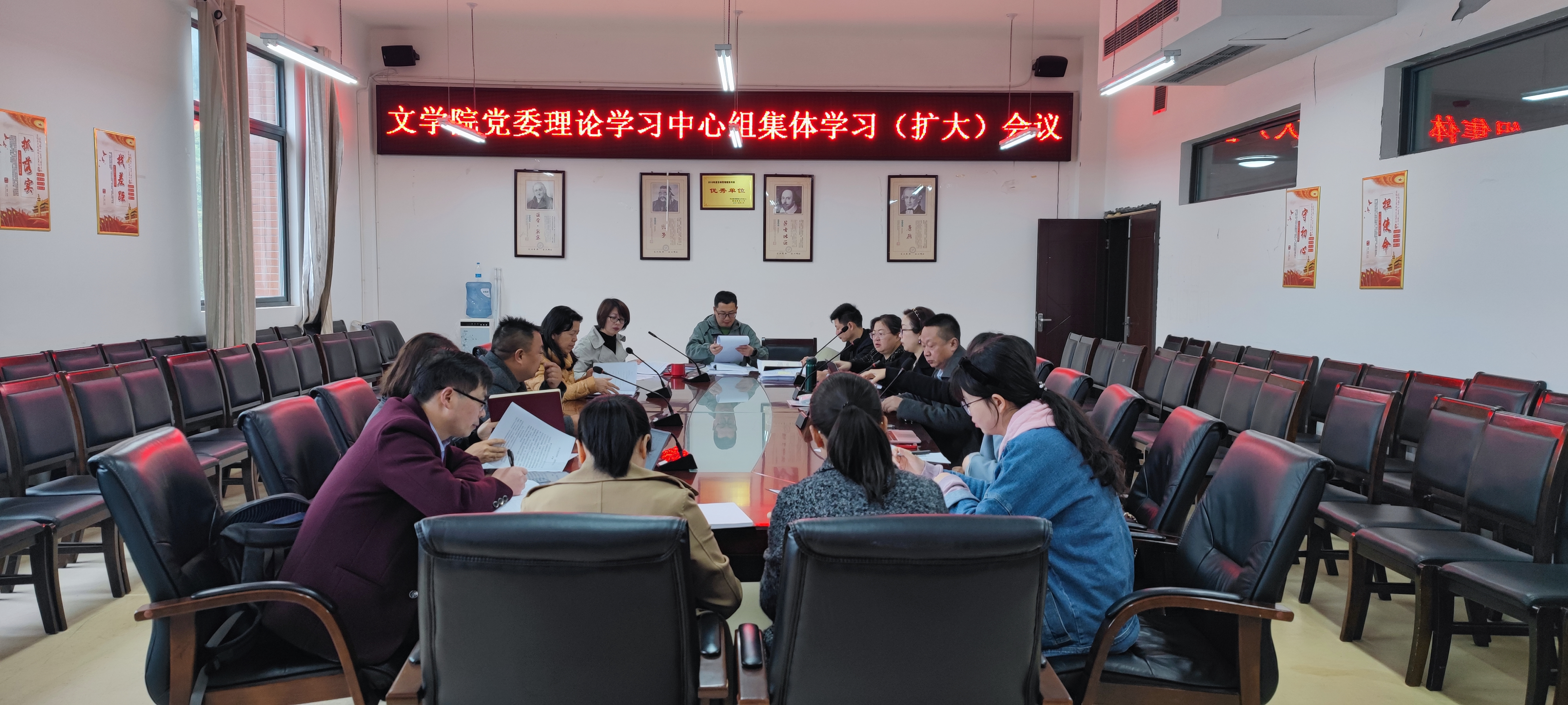 2022年3月29日上午,文公司党委理论学习中心组2022年第四次集体学习(扩大)会议暨“习近平总书记重要讲话和全国两会精神”专题学习研讨会在文德楼318举行。公司党委书记杨经华主持会议。公司党委副书记文静,公司党委委员张武桥、武晓丽出席,各党支部书记、各科室(系)负责人参加。