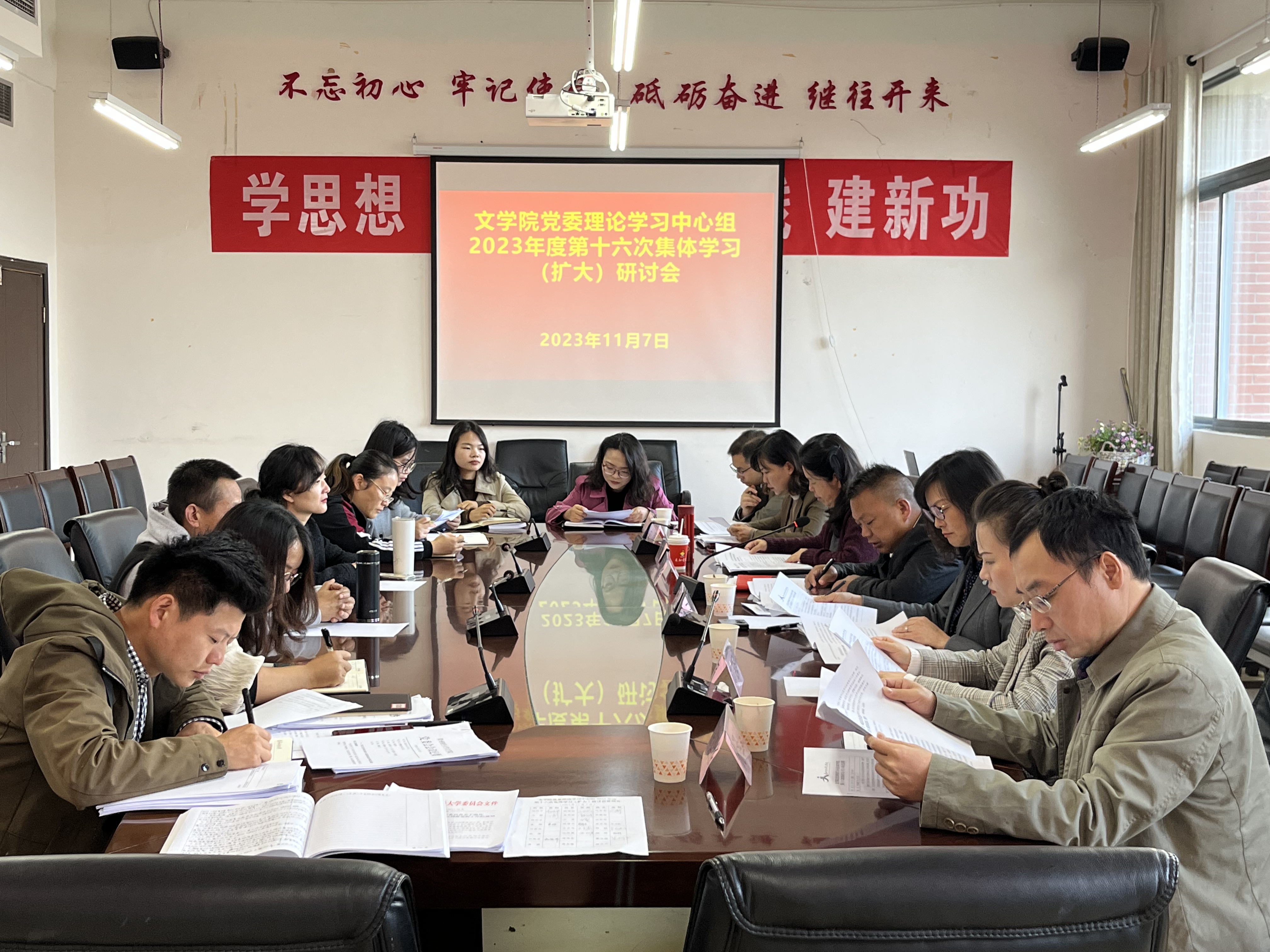 会议以“学习贯彻习近平总书记近期重要讲话和回信精神,坚持不懈用习近平新时代中国特色社会主义思想凝心铸魂,把习近平文化思想贯彻落实到公司宣传思想文化工作各方面和全过程,为担负起新的文化使命提供坚强政治保证,不断开创新时代公司宣传思想文化工作新局面”为主题,传达学习了习近平总书记对宣传思想文化工作的重要指示精神、全国宣传思想文化工作会议精神、全省高等教育高质量发展大会精神、《关于进一步提高党委(党组)理论学习中心组学习质量的意见》精神、党的二十届二中全会精神、省委第十三届二次全会精神和省委第十三届三次全会精神及相关文件精神。围绕研讨主题,文静作重点发言,汉语国际教育专业负责人杨蕴希作交流发言。