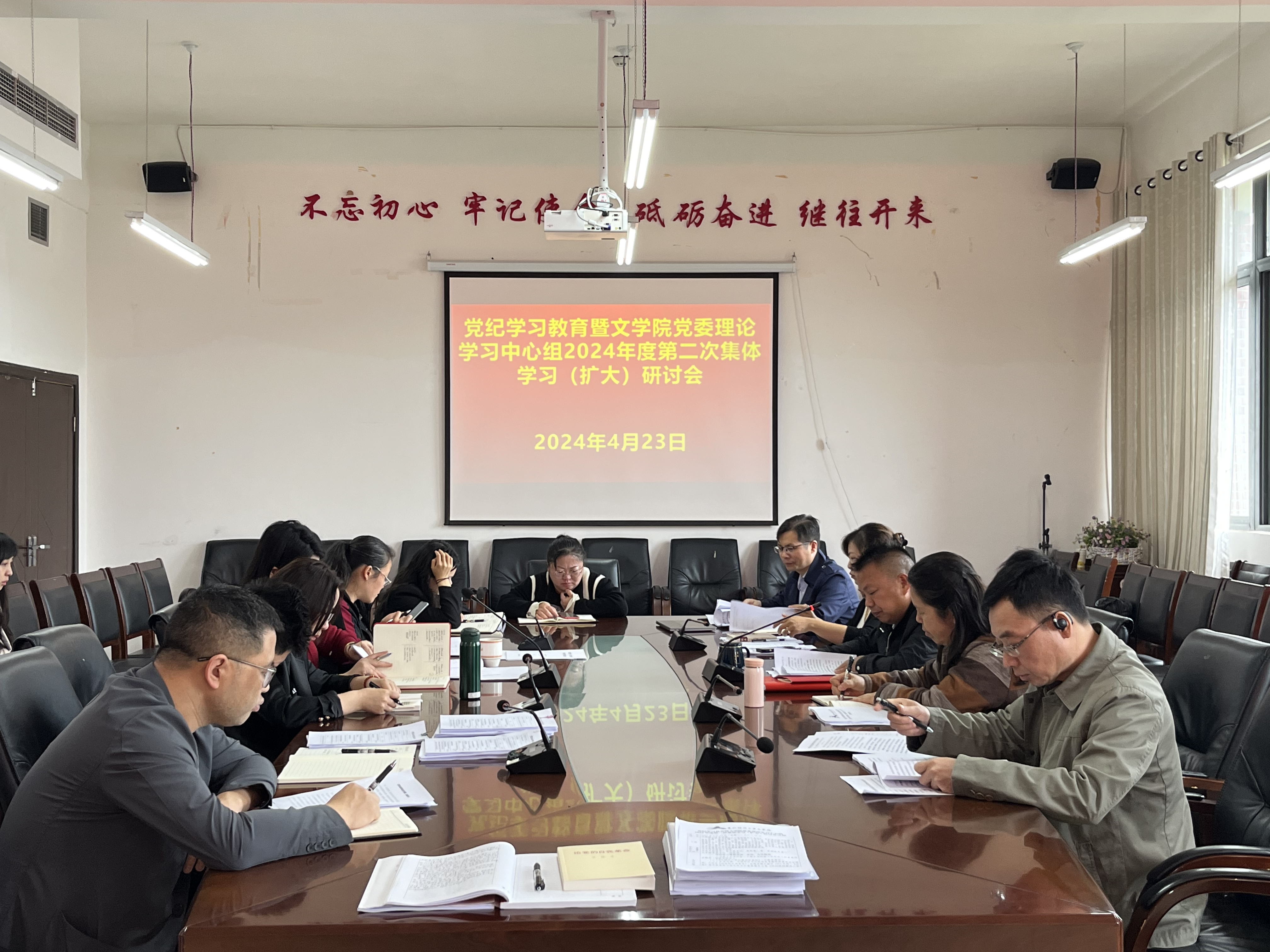 4月23日,文公司党委理论学习中心组召开党纪学习教育暨2024年第二次集体学习(扩大)研讨会,公司党委书记杨经华主持会议,公司党委副书记、纪委书记(兼)代泽华,公司党委副书记文静,公司党委委员、副经理张武桥,公司党委委员武晓丽出席,经理顾雪松(非党员)和各党支部、科(室)、系、导师组负责人列席会议。