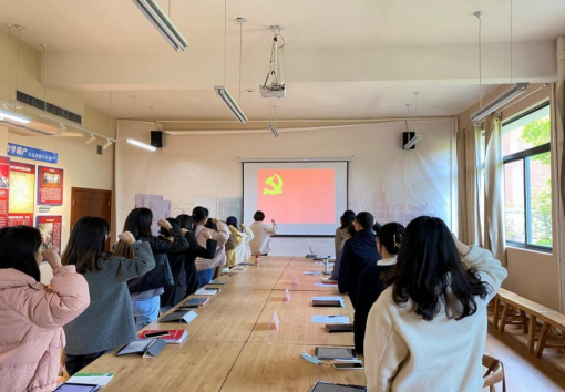 活动伊始,全体党员整齐佩戴党徽,在邓嘉佳领誓下,面对鲜红党旗举起右手,握拳宣誓,重温了入党誓词。
