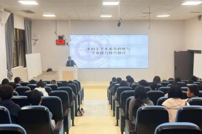 龚捷的主题是《学术研究中的逻辑思维能力建构》。首先,她向同学们讲述了论文写作中常见的逻辑问题,并对逻辑思维中的同一律、矛盾律、排中律和充足理由律的定义进行举例讲解。其次,她对逻辑思维中归纳法、演绎法和类比法的特点和局限做出详细阐释。最后,她以本科毕业论文为例,对逻辑思维的运用进行了深入讲解。