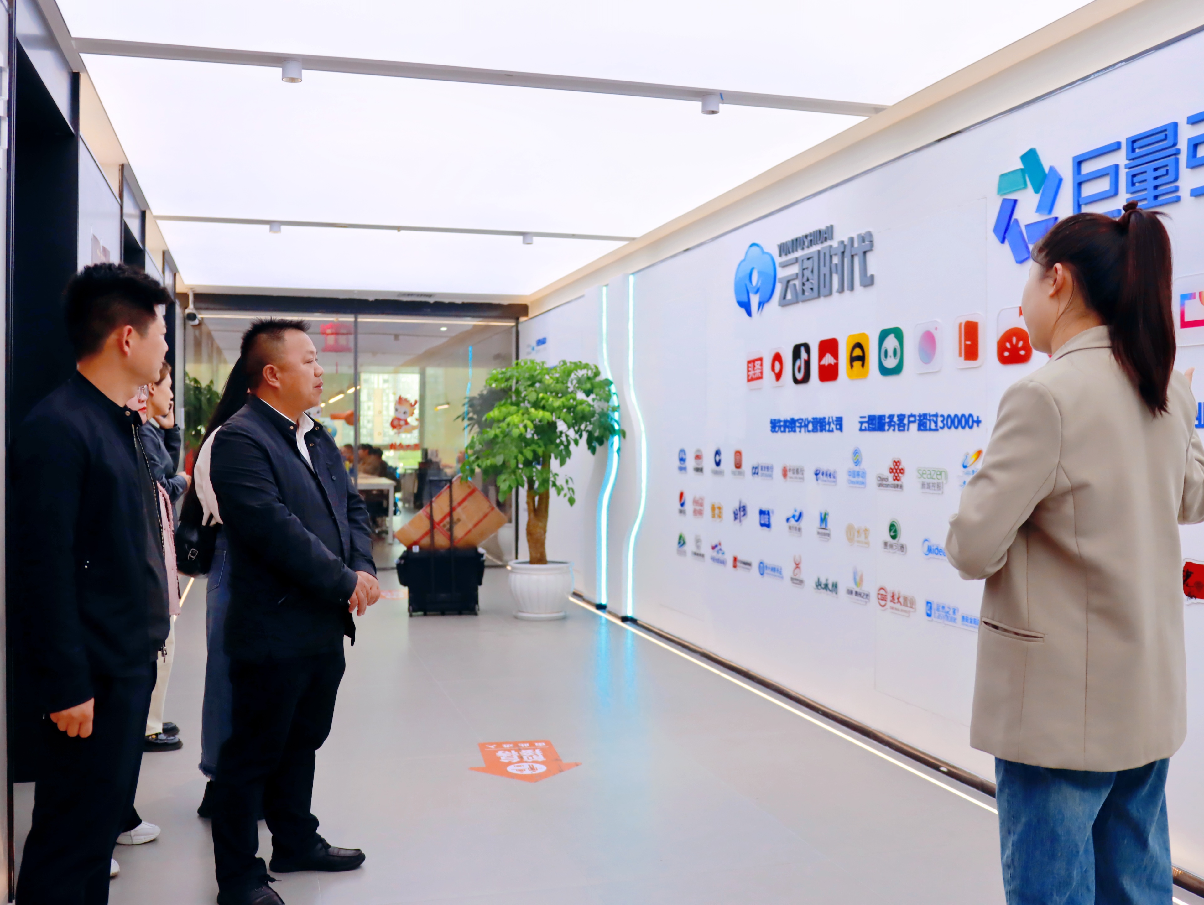 云图时代是字节跳动集团、抖音、今日头条等的贵州区域代理商,经营的业务涵盖品牌宣传、账号孵化、账号代运营、电商直播等。在贵州云图时代信息技术有限公司,公司人员先后参观了公司办公场所、党建云联盟建设区、校企合作矩阵及电商直播基地。