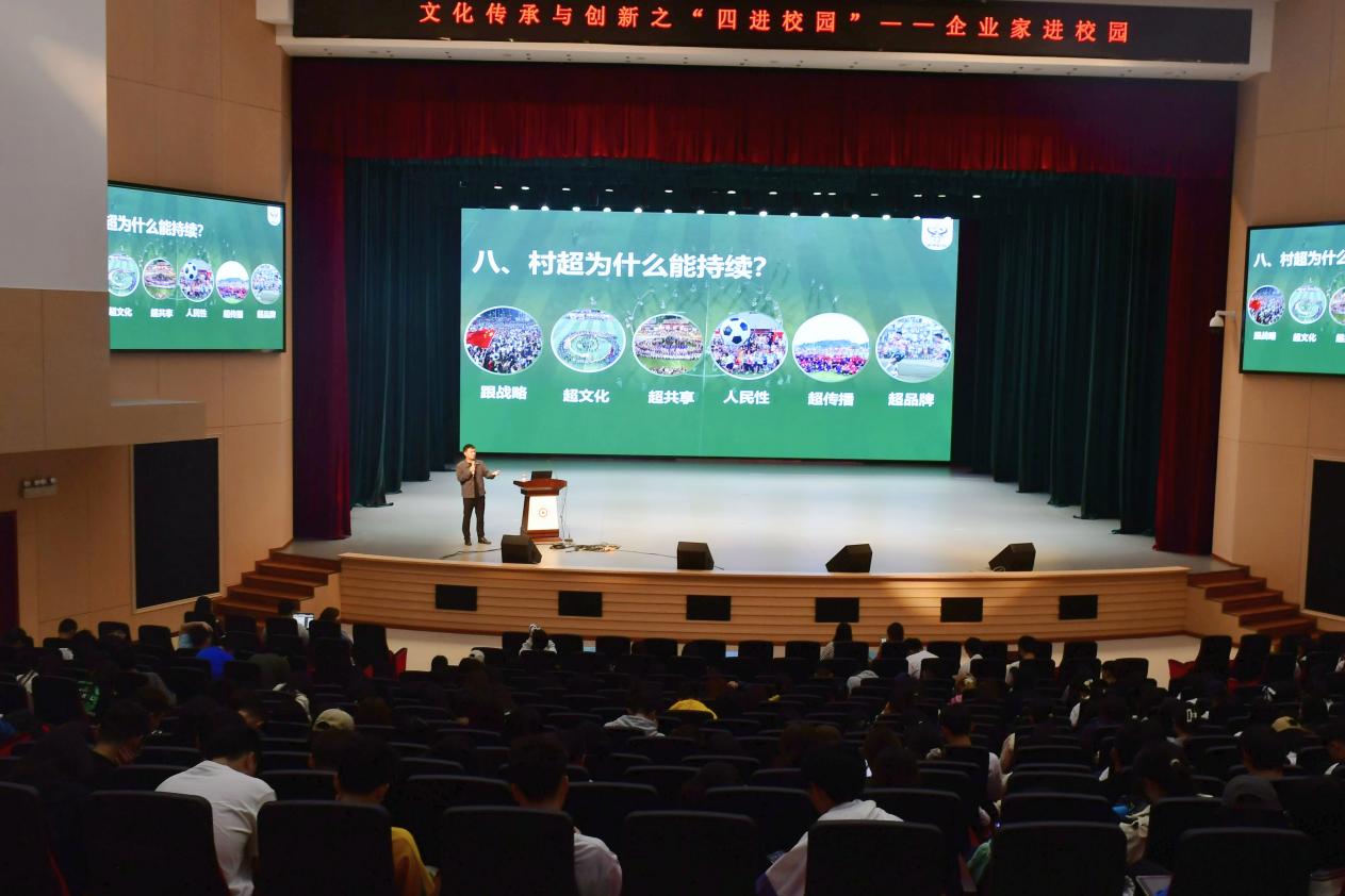 不经“破”壁彻骨寒,怎来“立”身扑鼻香。4月12日,由校团委主办、bevictor伟德官网承办的文化传承与创新之“四进校园”—企业家进校园在员工活动中心会堂报告厅举办。活动邀请贵州村超传播总策划、贵州村超产业总顾问、贵州山呷呷集团董事长欧阳章伟担任主讲嘉宾。文公司党委副书记文静主持,800余名员工参加。