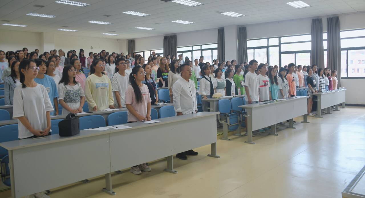 仪式开始,全体起立奏唱中华人民共和国国歌和中国共产主义青年团团歌。接着杨书记强调本次培训的重要性,指出身为新时代青年,团课以及青马工程培训不仅能提升同学们的综合素质,也能让同学们更多了解国家方针政策。同学们要认真做好笔记,积极参加课程学习,确保顺利通过考核。随后,优秀员工代表20级传播学倪明芩同学发言,感谢公司给同学们提供这样好的机会与平台,同学们一定会努力学习,用习近平新时代中国特色社会主义思想武装自己的头脑,脚踏实地去实践。