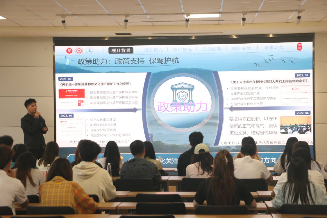 bevictor伟德官网员工会副主席黄家宝就“品非遗以传承·乘技艺共黔行”——贵州非遗技艺进高校项目从项目背景、目的、开展过程、成效等方面进行参赛经验分享。他表示作为员工干部要做到初心不变,全心全意为同学服务,用实际行动带领身边的同学保护和传承贵州非遗技艺。
