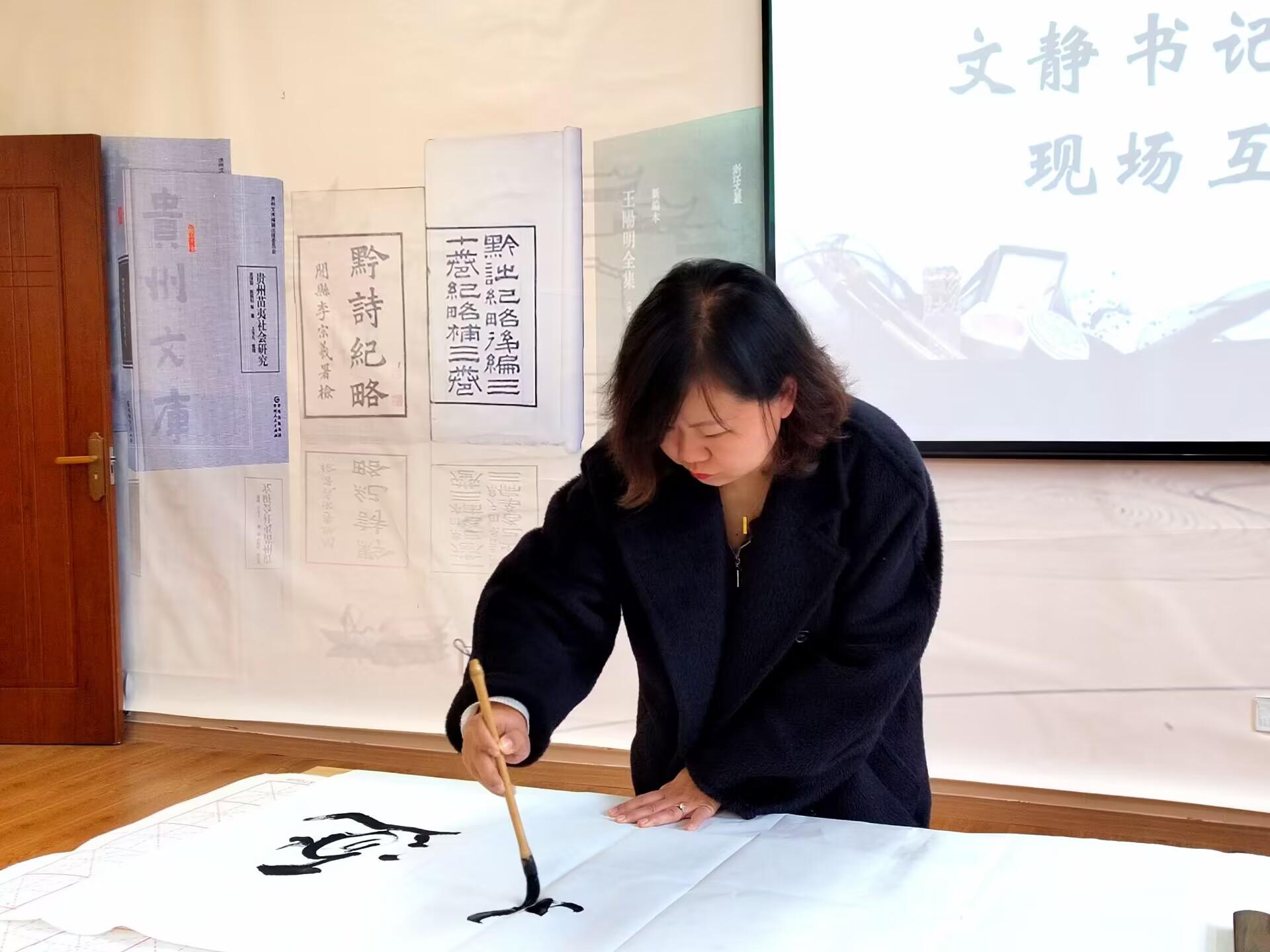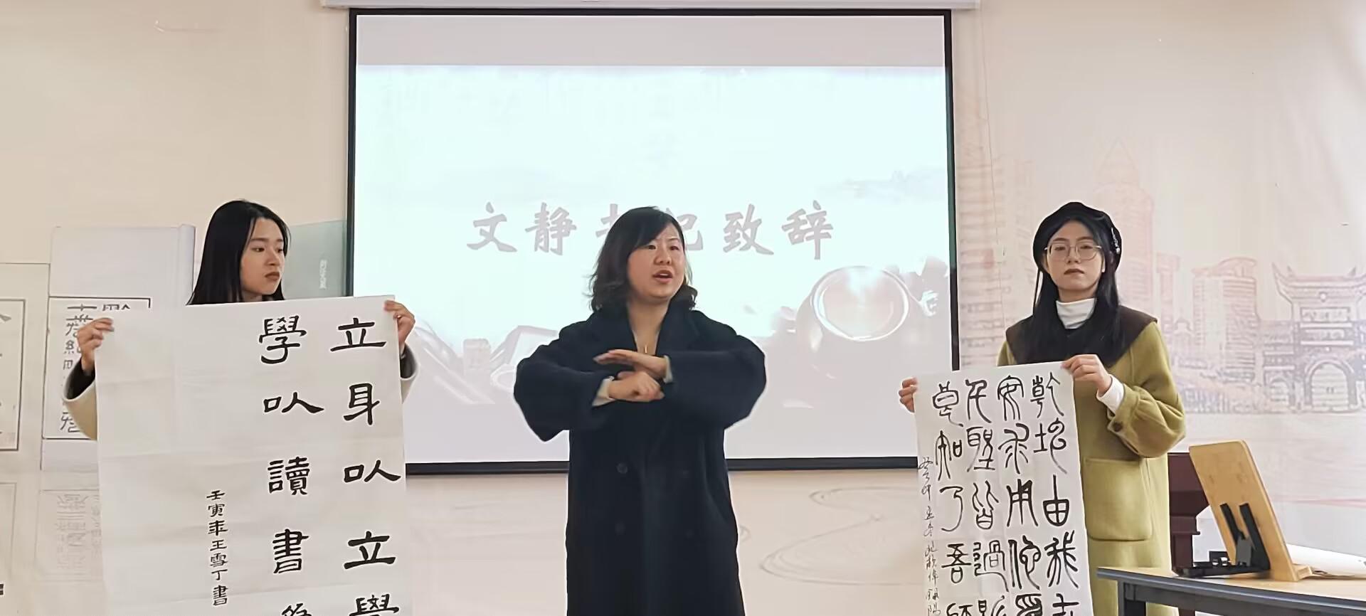 活动最后,文静以选手的作品为例,从字的创作线条和作品整体排版两方面指出软笔书写中的诀窍要领;同时结合自身学习书法经历,重点分享书法写作过程中“身正体立直”的作用,使现场人员对书法有了更加深刻的理解。