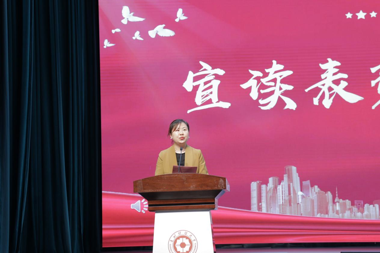 文静宣读《bevictor伟德官网关于表彰2023年度“五四红旗团支部”“优秀团干部”“优秀团员”“志愿之星”的决定》。