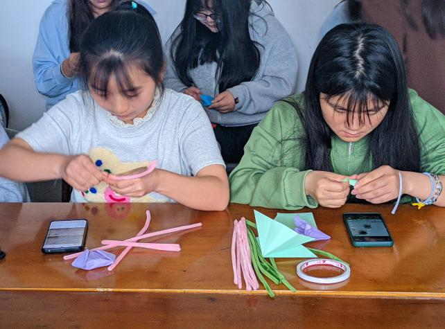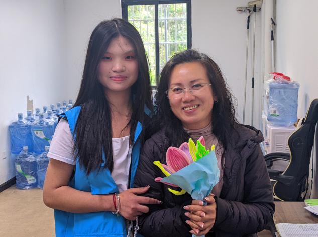 同学们用卡纸、扭扭棒等工具制作花束。一折一剪、一扭一绕,一片片花瓣、一朵朵花萼饱含着对伟大母爱的感恩之情。同学们通过线上向母亲献上自己精心制作的花束,表达节日祝福。志愿者们将花束送给玉兰苑的所有宿管阿姨,向她们表达感谢和祝福,阿姨们感到非常惊喜和温暖。