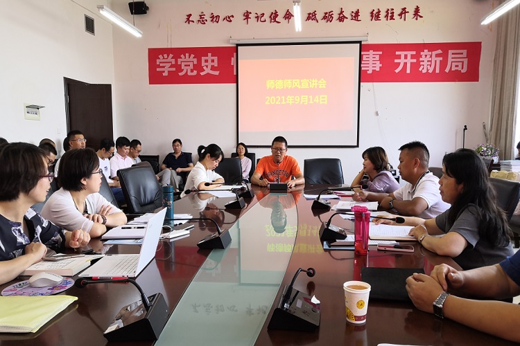 9月14日下午,公司在文德楼318会议室开展师德师风宣讲会。会议由顾雪松经理主持,陈正府老师作为教师代表发言,全院教职工参加了本次宣讲会。
