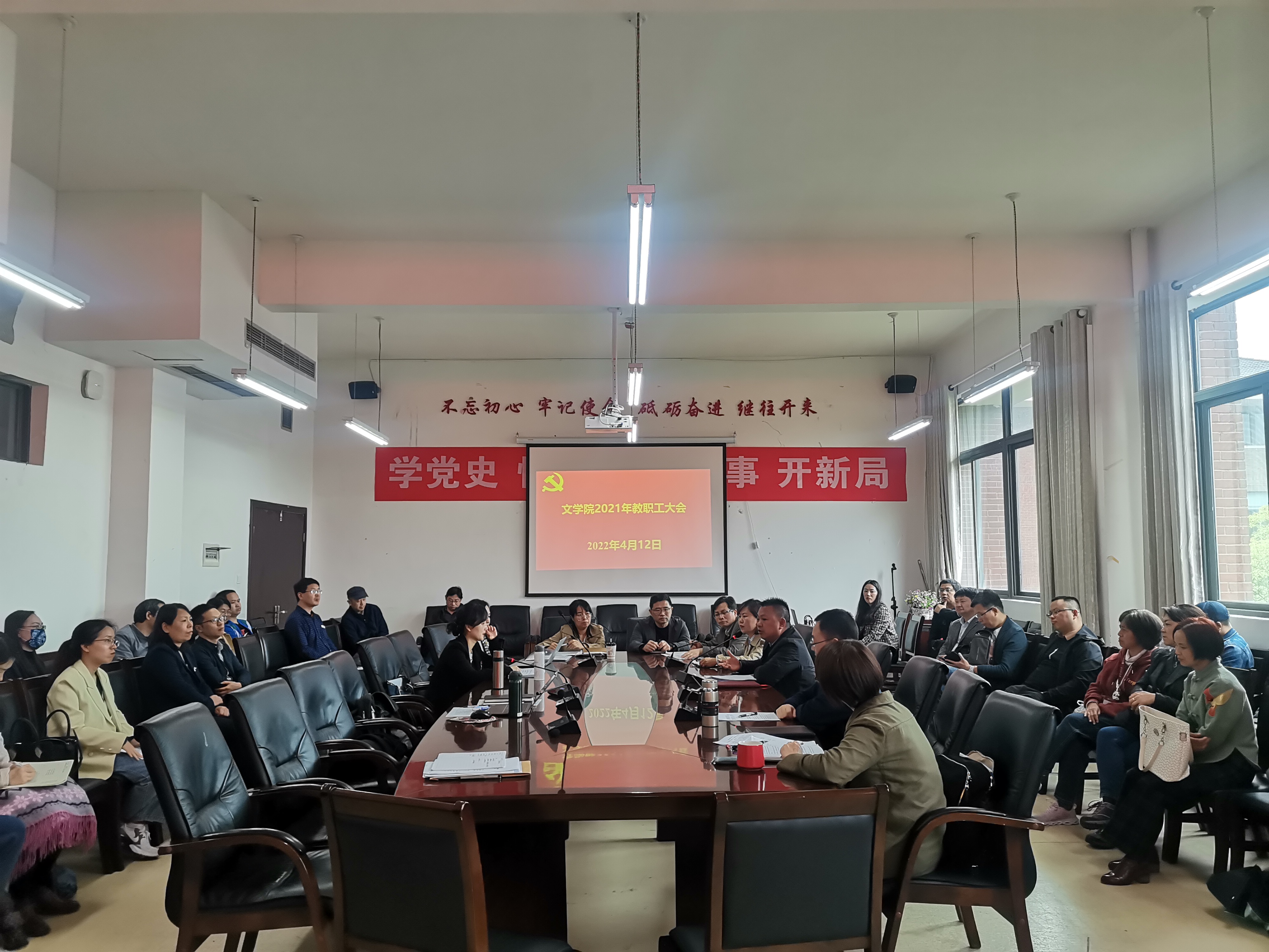 2022年4月12日下午,bevictor伟德官网2021年教职工大会在文德楼318会议室召开。会议由文公司党委副书记文静主持,全体教职工参加。