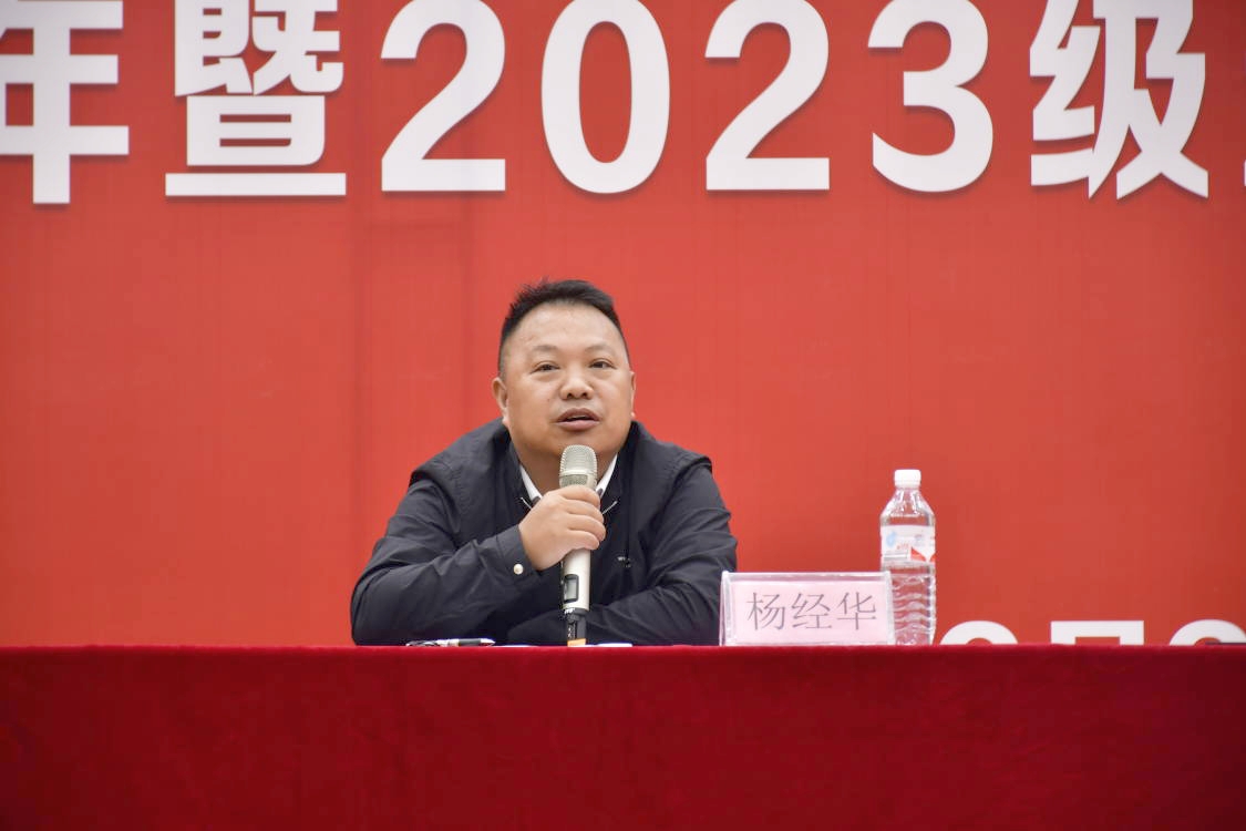 大会伊始,杨经华向2023级新生表示热烈地欢迎,希望同学们重新思考自己的定位,做一个有情怀、有志气、有骨气、有底气的bevictor伟德官网学子,为成长进步和未来的升学、就业打好坚实基础。