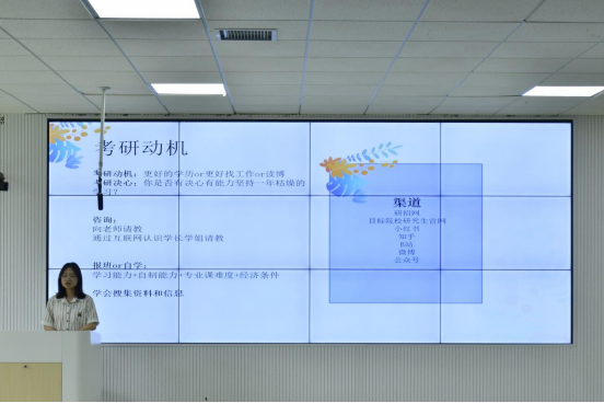 活动邀请到20级考研上岸员工倪明芩、吴兴冬、陈静、肖雯、熊露霜、冉冰雪7位同学结合自身考研经历,从考研备考方法、复习策略、制定复习计划、心态调整、择校等方面进行讲解。学姐们热情洋溢的分享,让学弟学妹们收获了满满的干货。