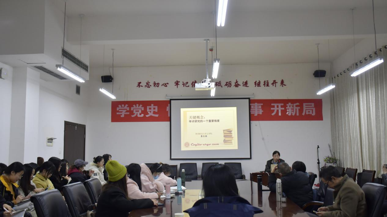 冀志强老师以“关键概念:学术研究的一个重要维度”为题,从中外文学体裁对比开始谈起,并利用中外不同学者对“literature”、“美”等词汇的理解差异,强调了“关键概念”在学术研究中的重要性。