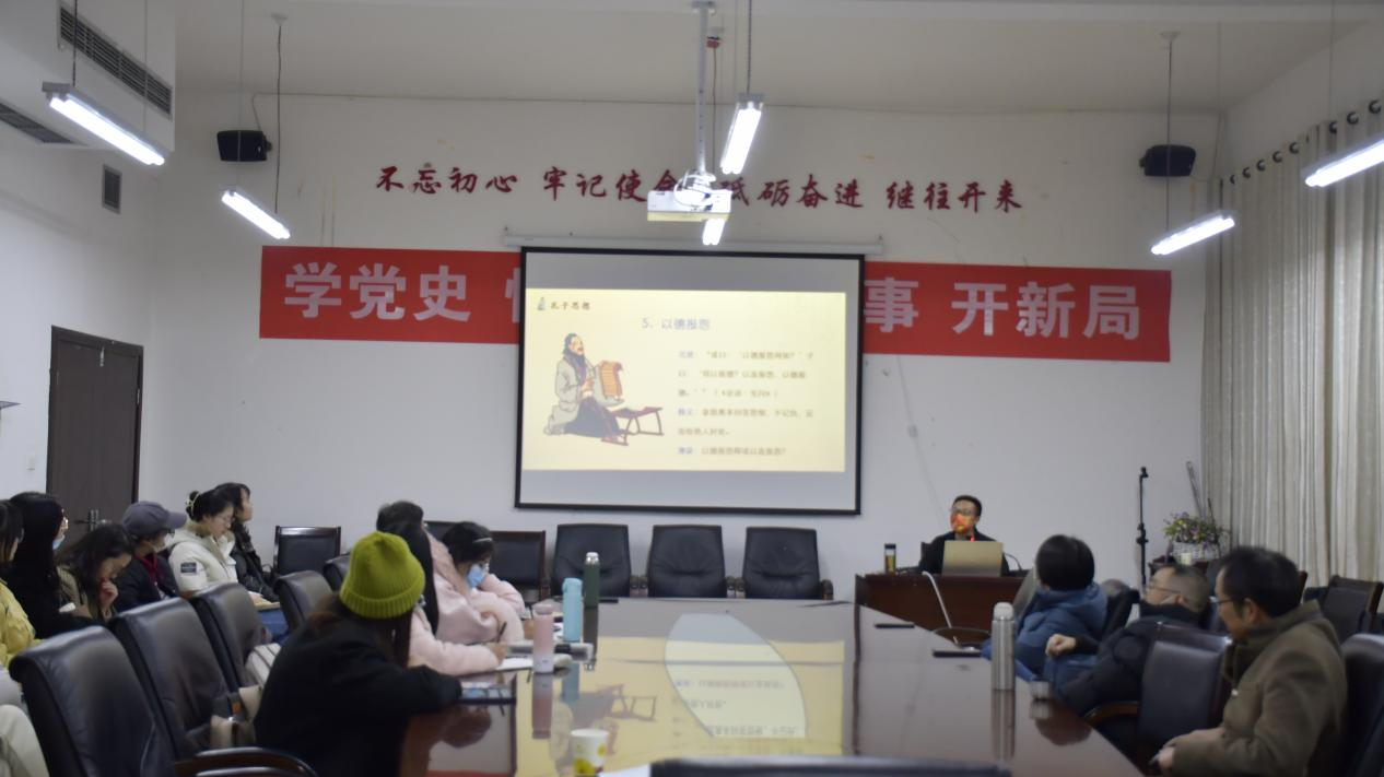 邓立老师以“《论语》中的成语典故赏析”为题,分析了成语在《论语》中的作用、定义与界定,选取大量《论语》例句,并且从文化、时代背景等深层次角度进行相关的成语赏析。